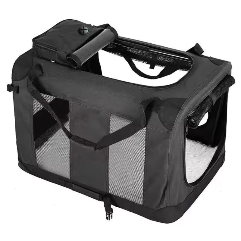 Multifunctionele draagtas voor huisdieren, ideaal voor reizen, auto of vliegtuig. Compact, licht en eenvoudig op te vouwen, afmetingen 60×42×42 cm.